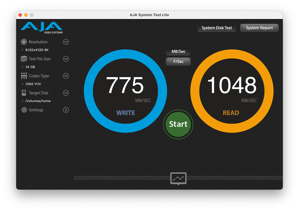 And here’s my latest test on AJA. That’s 14.2 Gbit read speeds.
