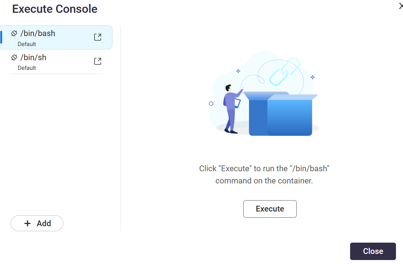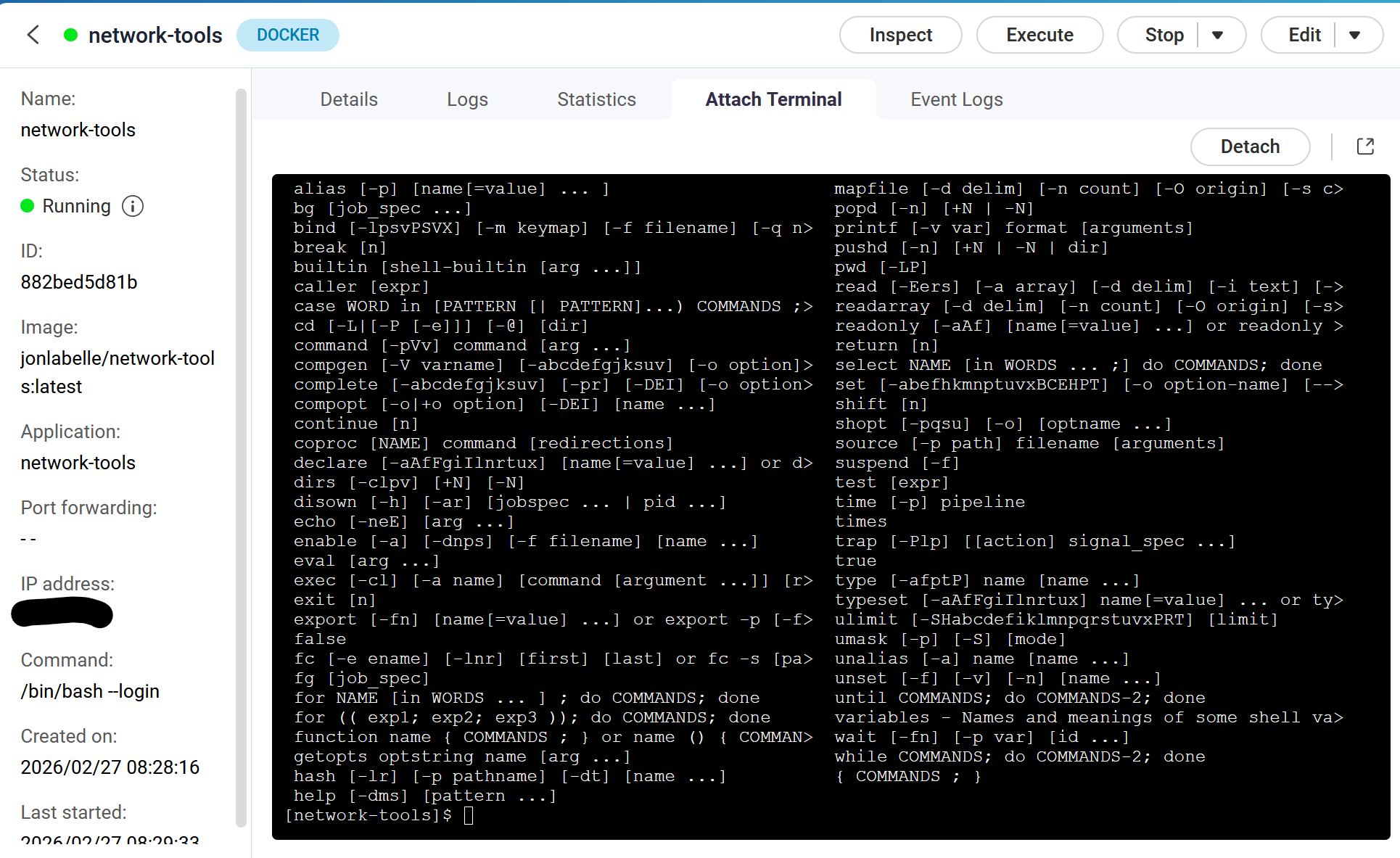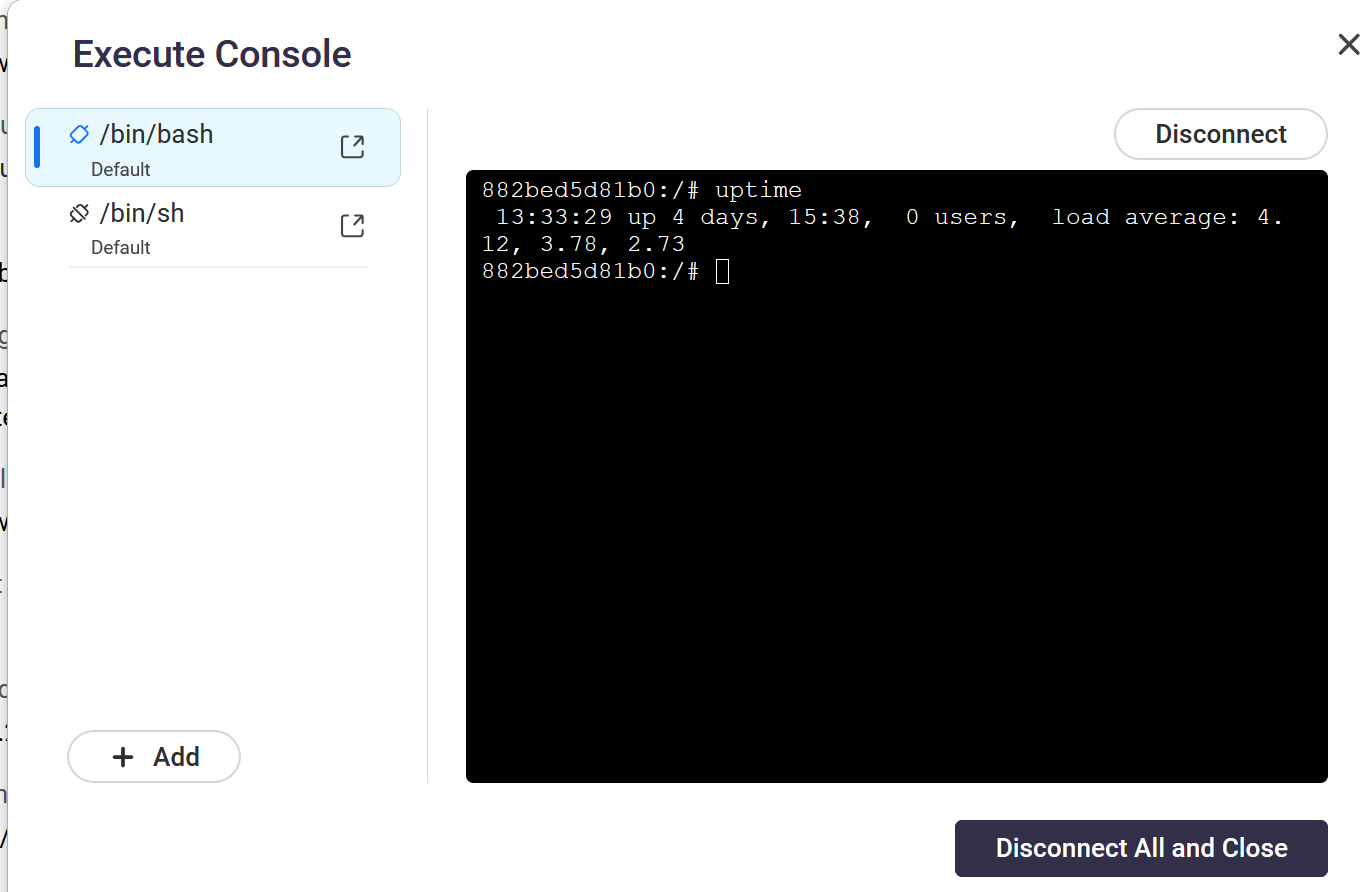 What do I need to do to enable these? I have tty: true in my compose file… It doesn’t help. Other containers I run have the shell attached. This one does not. If I try “execute” - I get this error: