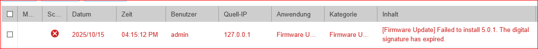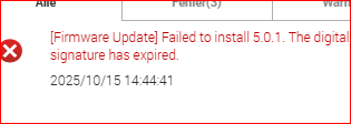 Von Firmware war bisher keine Rede(oder gings Anfangs um die eigentliche Firmware und nicht im Probleme seit ner neuen Firmware?), nur was von Zertifikats Erneuerung…wenn du ne andere Fehlermeldung hast, dann bitte ein wenig mehr Info.