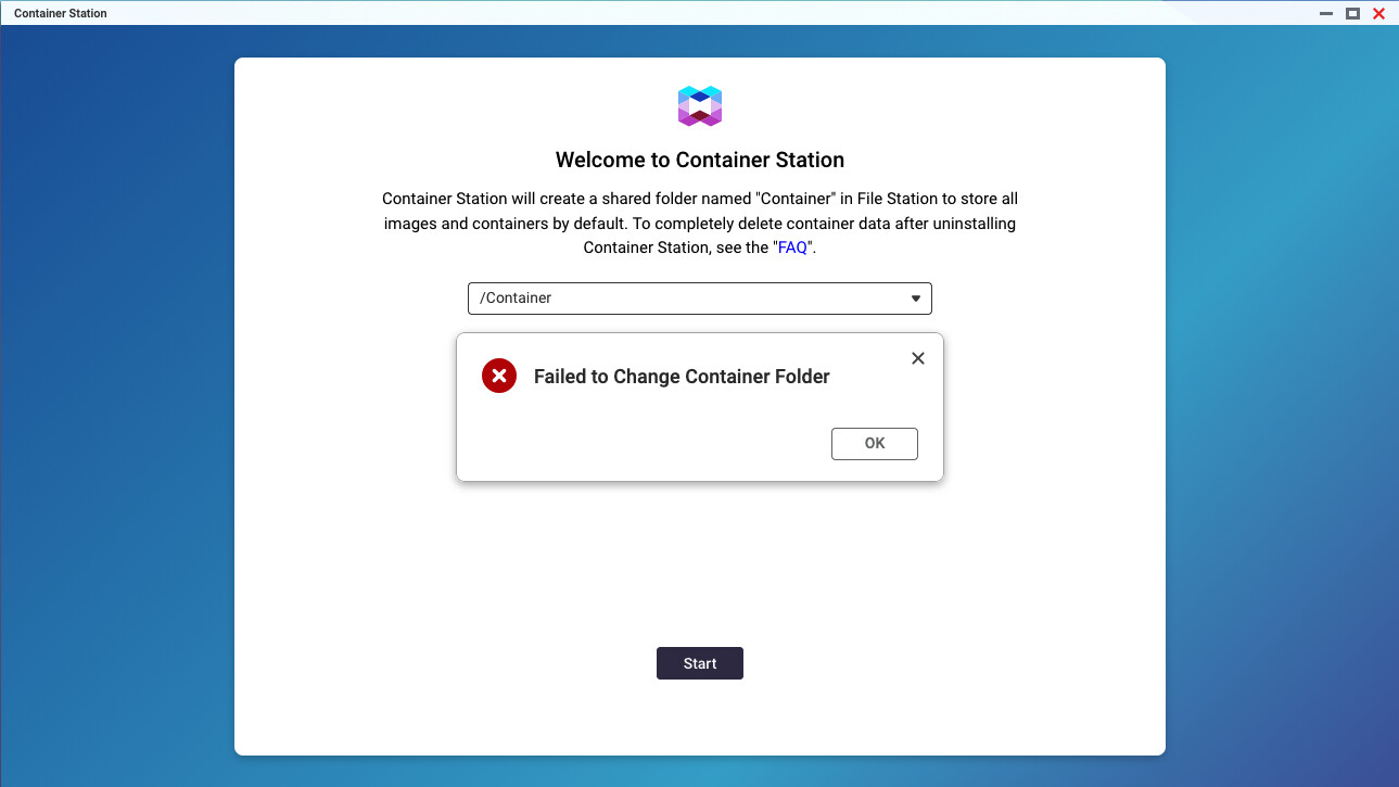 Brand new TS-473A, installed the latest QuTS Hero 5.3. When I run the Container Station for the first time, the /Container folder is supposed to be created, but the following error occurs. Any help would be appreciated.