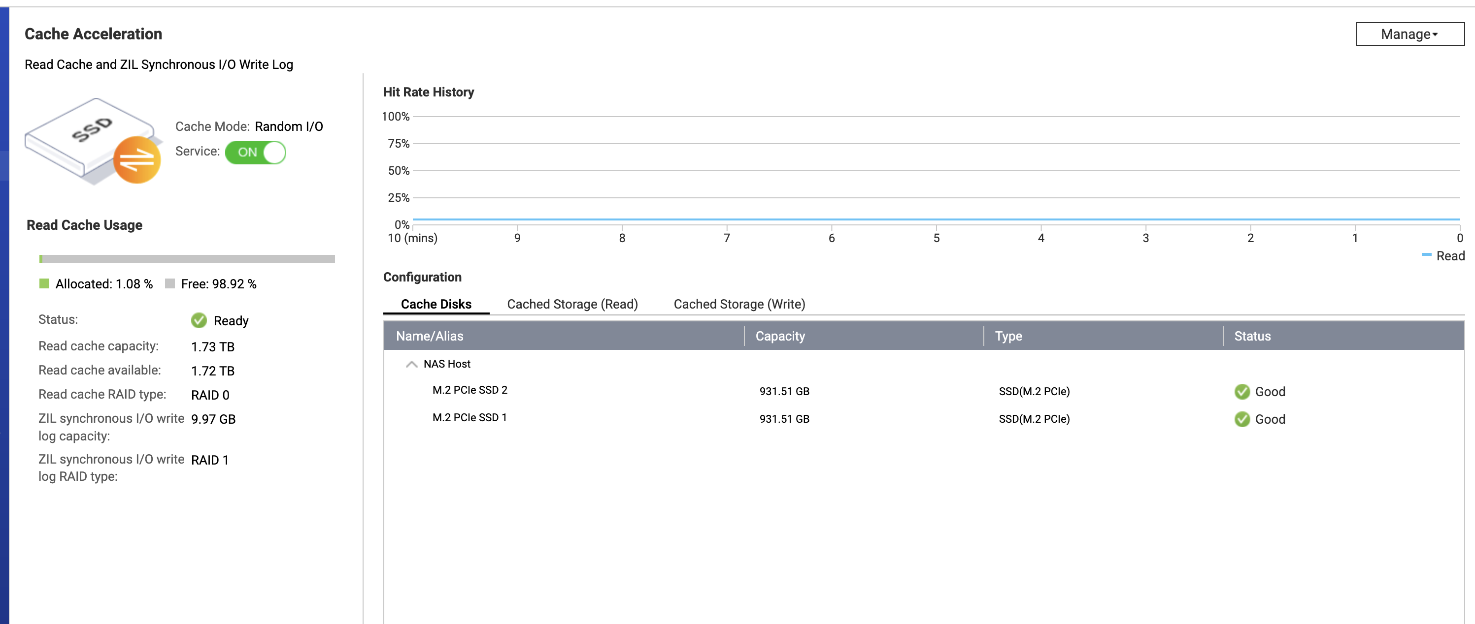 I always had issues with cache on my NAS with quts. I finally gave up on using it. I also was using WD RED m.2 drives so wasnt like it was consumer hardware.