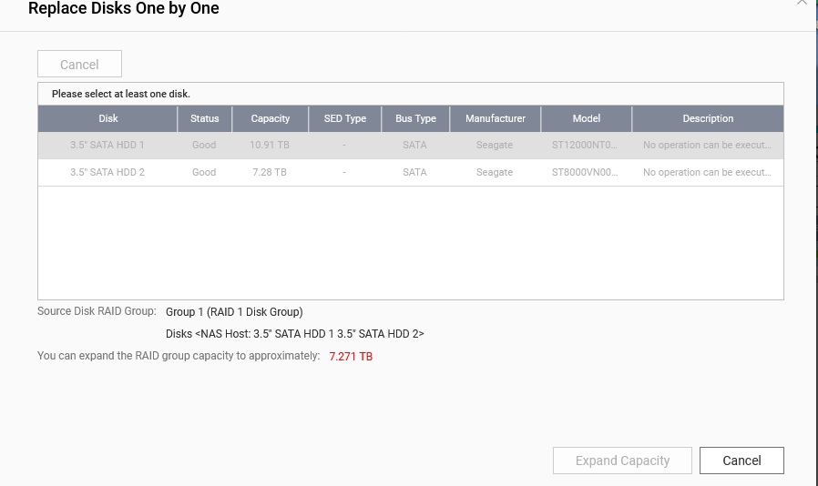 4- back to the base setup both w/8TB drives until I find more. BTW, I’ve backed up all data on the NAS