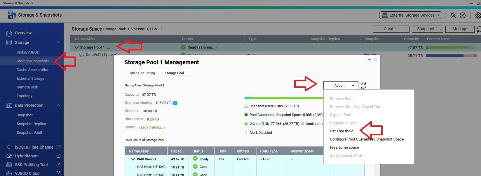 From QNAP support: “Looking at this, I think doing a clean build with your two new disks will be the safest thing to do. You can boot this system up without drives, and start a new system setup process. Then put in your two new 12 TB disks. From there, choose the option to ‘Reinitialize.’ You can set up the system brand new and then restore your data.”