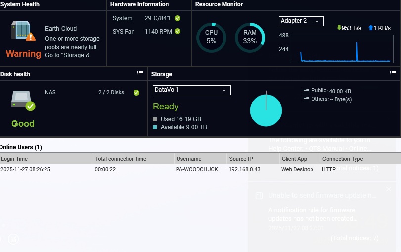 Not sure what I missed after above but I get this warning and don’t know how to fix it… or should I just do the above again? I’ve not added any data/files to NAS yet.