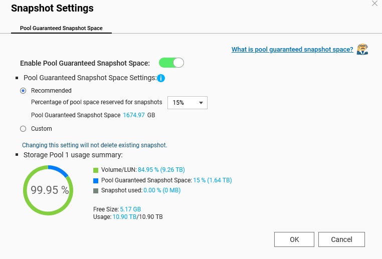 I changed it to 90% and warning is gone. I’ll dig deeper another time to learn how that relates to the 15% snapshot. thx