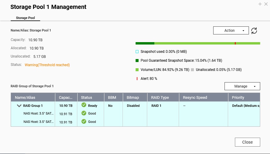 I see there is an active alert threshold of 80%