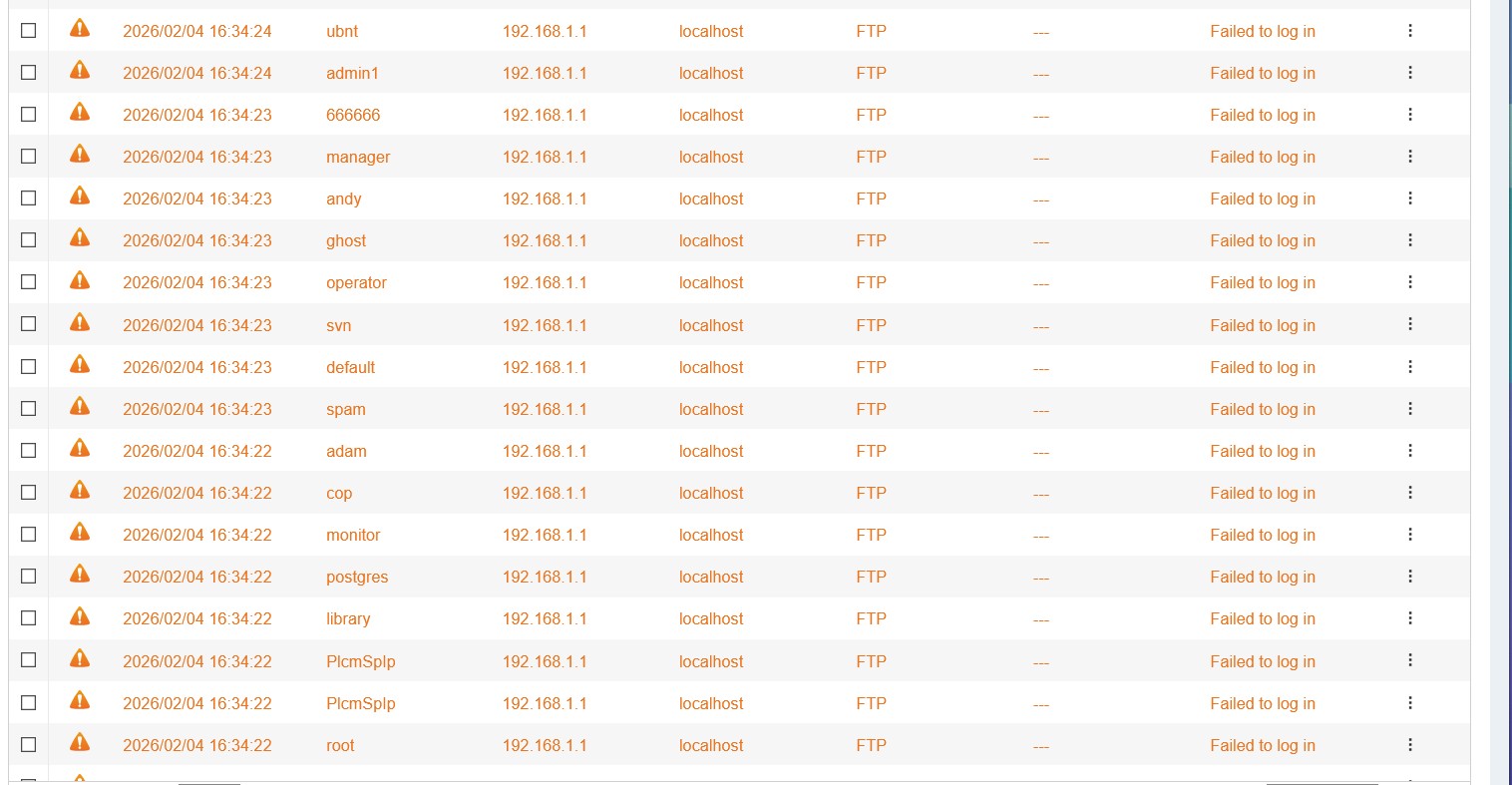 Team, I am getting continued hits from router IP (192.168.1.1) with many different usernames all of which do not exist and admin is disabled. I do run Plex and share with a few friends (3) outside network and restricted to their account info. Attached screenshot but qulog is getting max message so it is continual at this point.