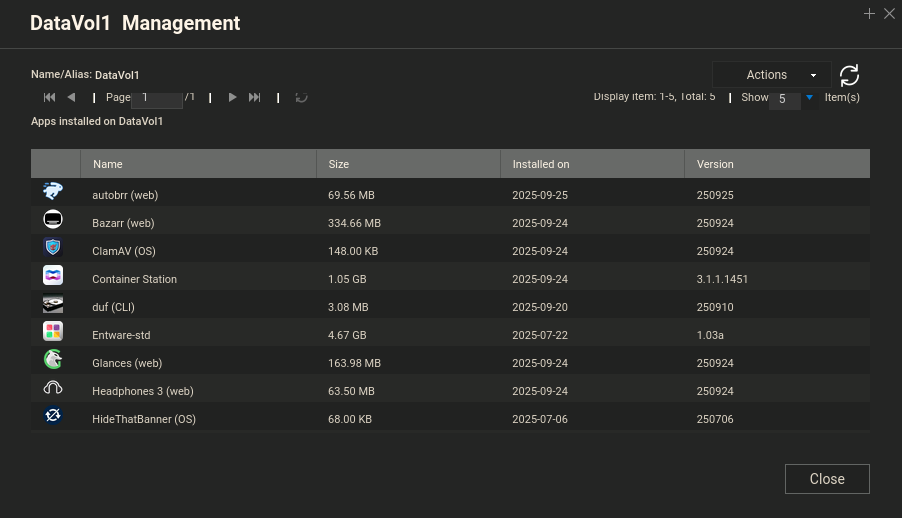 In Storage & Snapshots, there’s a window to show details for installed QPKGs: