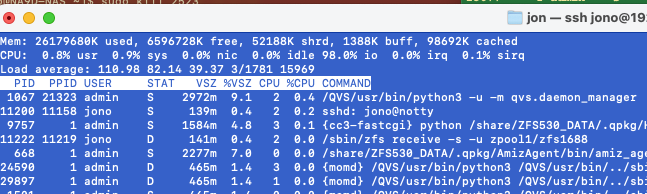I’ve been working with QNAP support on an issue on my TVS-672XT. The load average on the NAS will start to spike. Most of it is being consumed in I/O tasks. Last night it was up at like 110 to 150 and nothing was going on that should cause that. I managed to reboot the unit over SSH but it took hours.