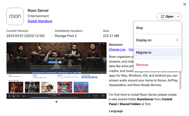 @PJK the team has updated the Roon Server settings in the hero h6.0 App Center, and the migration should be possible now.