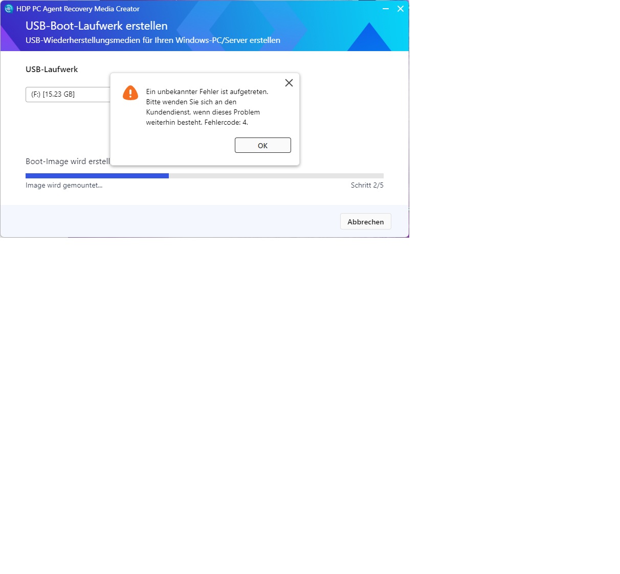Hi, I set up a Qnap TS-855eU two days ago. Now I’ve installed the HDP for PC APP and used the HDP PC Agent from a PC to create a backup. That worked fine. After that, I wanted to create the USB drive, but it doesn’t work (tried several sticks, 4GB-16GB); it gets stuck at step 2/5 (Image is being mounted). There’s no error message. According to Explorer, the stick isn’t formatted and no data is written. Unfortunately, I have no idea. Maybe someone else has had this problem before. OS: QuTS hero