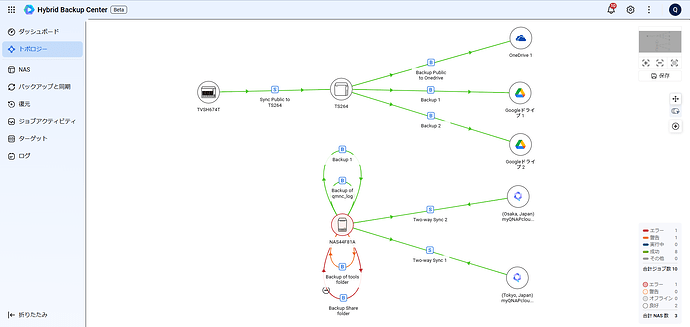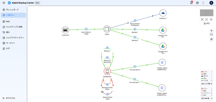 By combining the job list and topology view, you can check whether backups on your managed NAS devices are being performed correctly, without having to log into each NAS’s settings screen.