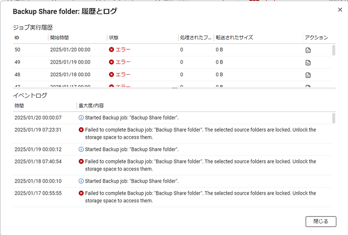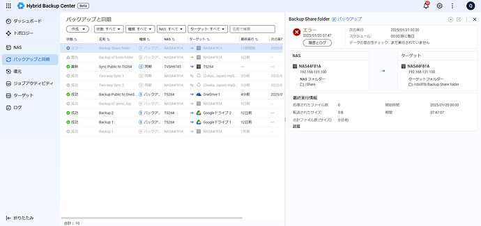 In this case, it says “source folder was locked,” so I’ll remotely access the NAS from the “NAS” menu to check the cause of the error.