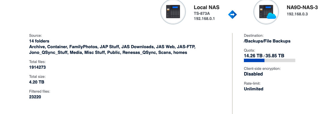 Anyhow, after this first time backup to an empty folder on the secondary NAS, this is what HBS shows: