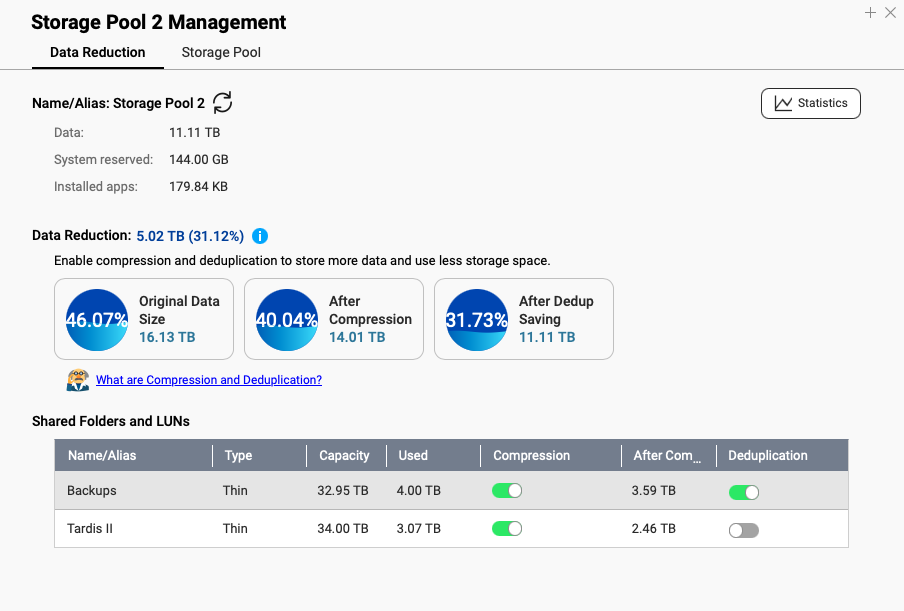 So QuTS Here is doing some size reduction with compression and deduplication: