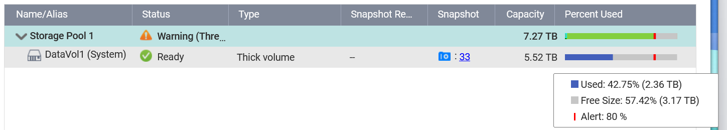 Why is my storage pool full when there is still free space in my thick volume? | QNAP
