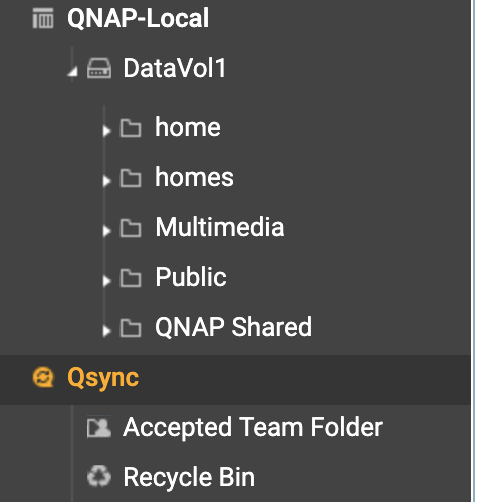 FileStation 5 ——這是我唯一可以存取 QSync 檔案的地方。你可以看到 QSync 資料夾是放在我的 QNAP-Local 資料夾之外。