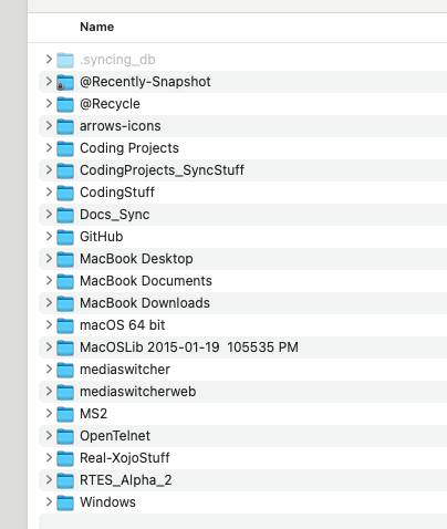 所以我不確定為什麼它沒有顯示出來,但如果你想從 Finder 存取同步的檔案,只要配對到不同的資料夾即可。我有一個叫做「Jono_QSync_Stuff」的資料夾,裡面包含了大部分我同步的資料夾:
