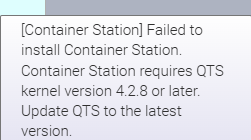 sorry not sure how the DM notifications work so I’ll just post this here aswell lol, media streaming add on worked great, container station hit me with this which left me confused because I’m pretty sure the firmware I’m on is enough for what it’s requesting? @haru0