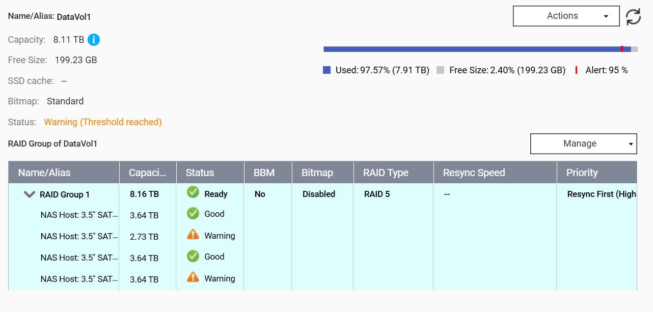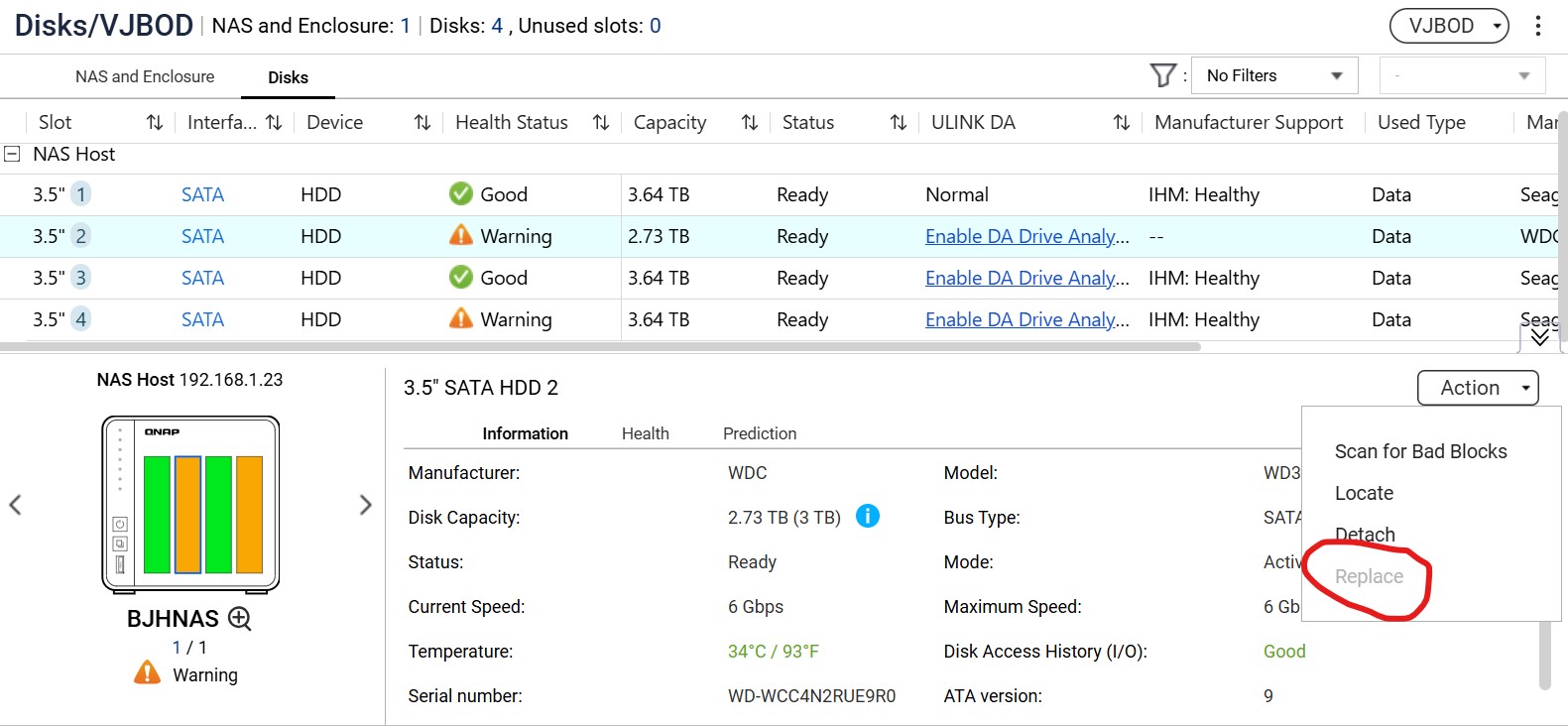 Just noticed that i have 2 drives that have a status of warning in my qnap TS-451. The option to replace a drive is not available. Is there a way to replace the drives?