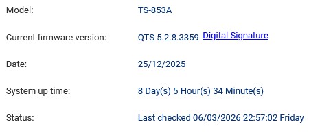 Hai, teman, baru-baru ini ada rilis firmware yang kemudian ditarik oleh QNAP karena alasan yang tidak diketahui. Notifikasi pembaruan akan sedikit kacau untuk sementara waktu.