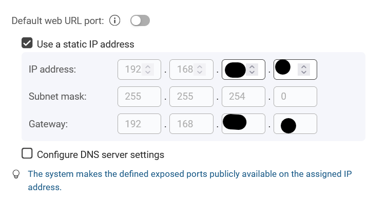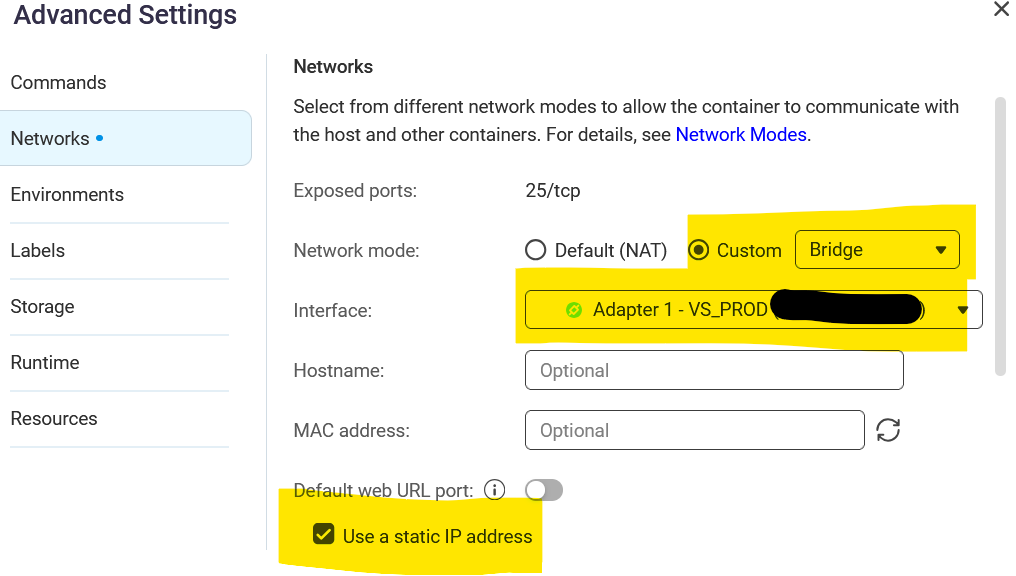 Well, by default the containers use DHCP. I was just looking and I don’t know if there’s a way to set a fixed IP address for the containers. There is not in the container setup. Maybe you have to do it in Compose.