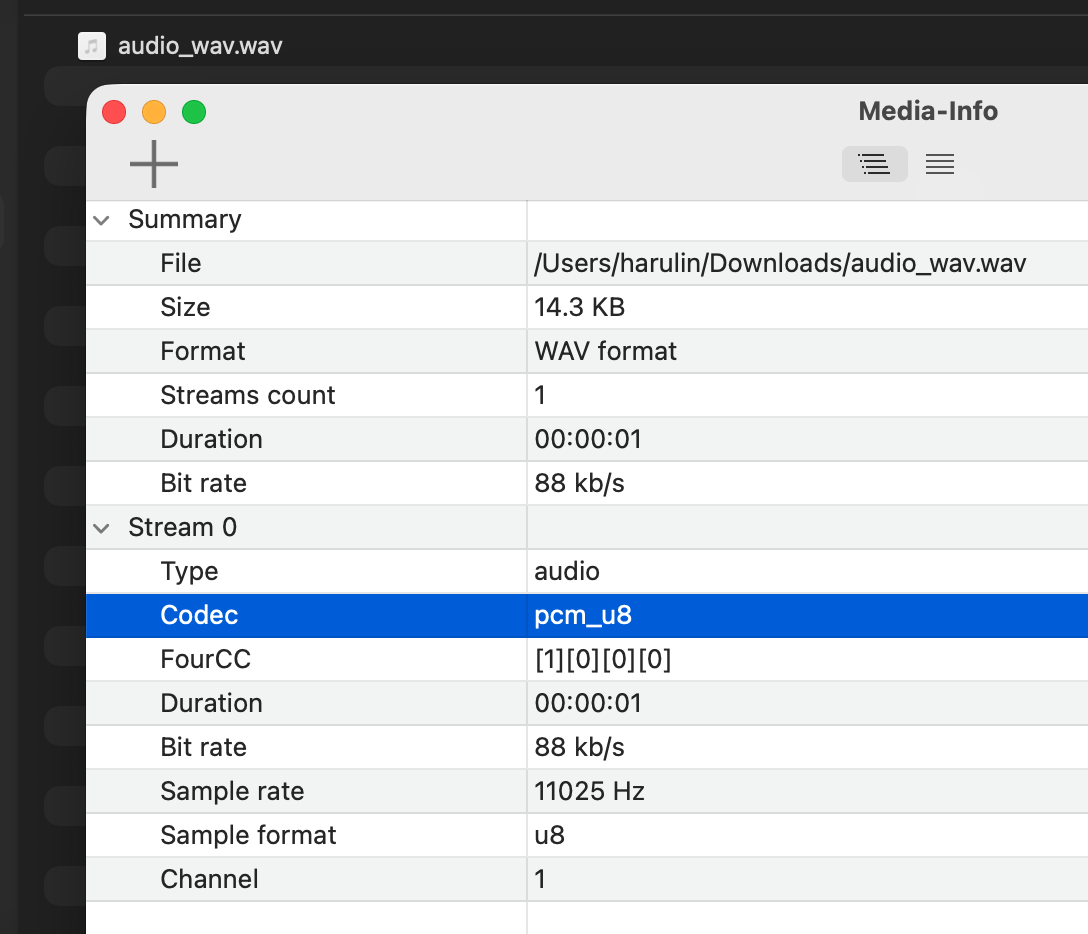 Anda dapat membagikan contoh file WAV atau klip pendek kepada kami untuk memverifikasinya, atau memeriksa codec apa yang ada di dalam file WAV menggunakan aplikasi MediaInfo.