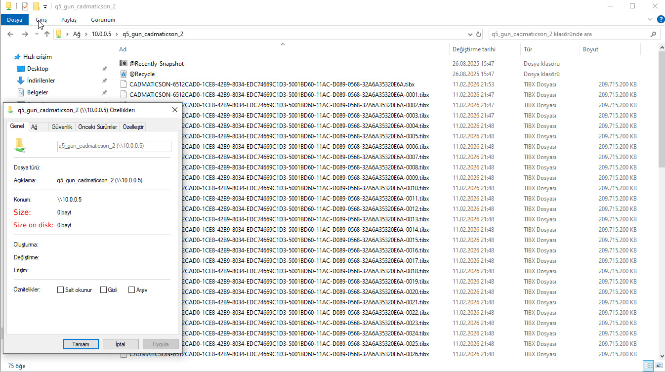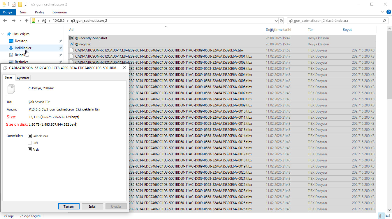 When I click on the properties section of this backup folder in the File Station application, it shows its size as 19.69 TB. Yes, there are actually around 100 files of 200 GB each in this folder. These are .tibx files, which is the Acronis backup file type.