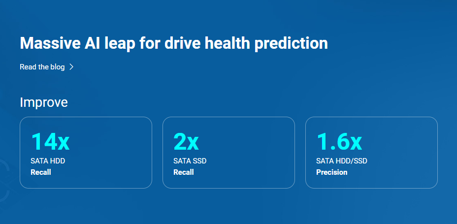 Nah, sekarang QNAP bekerja sama dengan ULINK untuk membawa solusi yang jauh lebih canggih: DA Drive Analyzer dengan mesin AI terbaru. Dan hasilnya? Kemampuan prediksi drive failure jadi jauh lebih akurat, lebih cepat, dan lebih pintar.