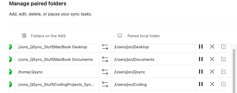 1.) Qsync works by creating “paired” folders. You set up what folder on your computer you want to sync with what folder on your NAS.