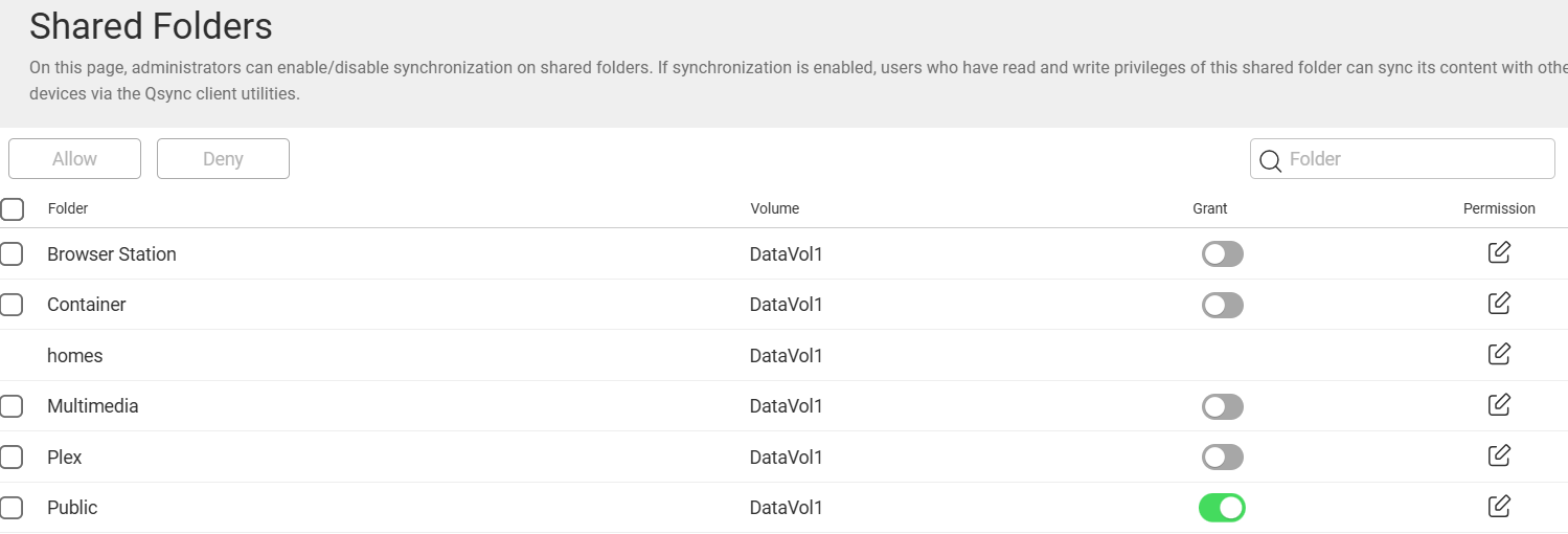qsync centralでは /homes フォルダーの有効化・無効化ができません。デフォルトで有効化されているものと思われます。