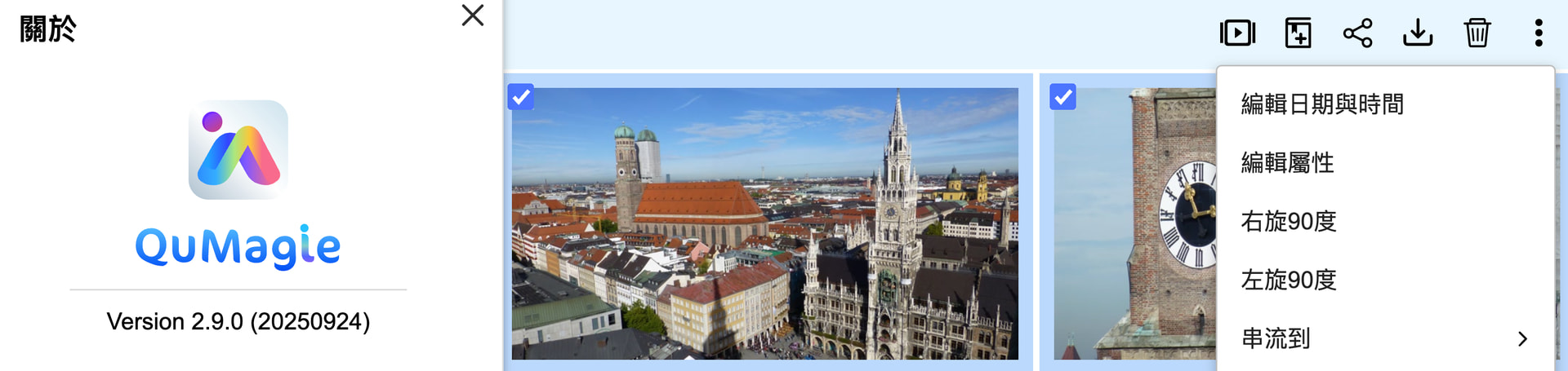 Hi @shuenn, the current version of QuMagie should already allow you to edit the date, time, and properties of multiple photos and videos at once. May I ask which version of QuMagie you are using?