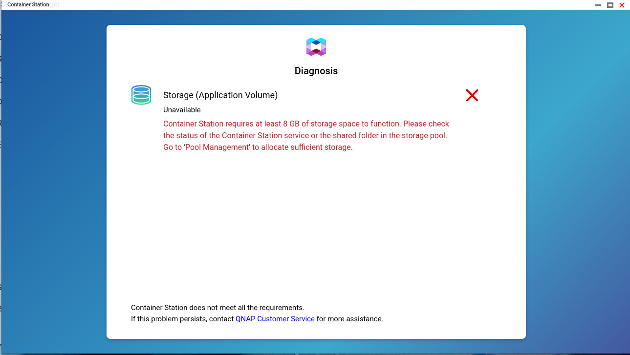 When Try to start Container station there is issue about Storage Space.