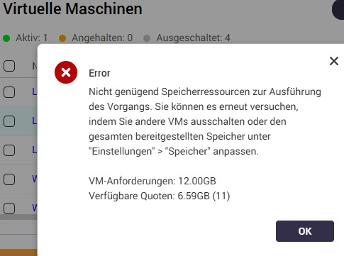 When starting a second VM, you get the following error message