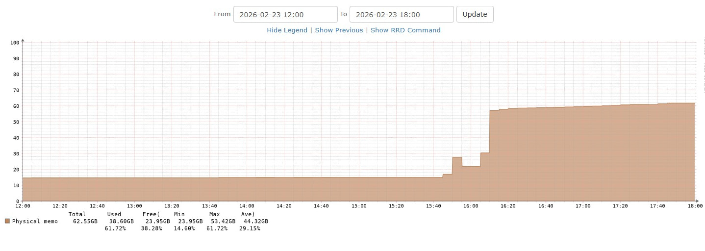 29.31 GB used (Allocated + ZFS ARC + buffer + cache)