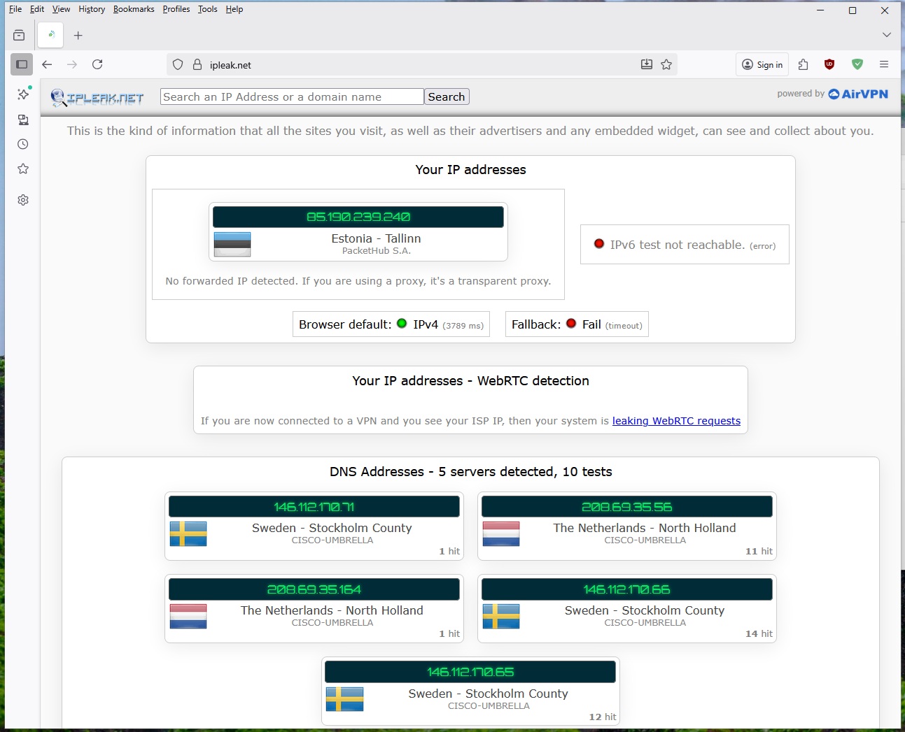 IPLEAK.net reports MANY of my ISP’s DNS servers leaking. I tried reconfiguring the VPN several times using different locations but it always leaks DNS.