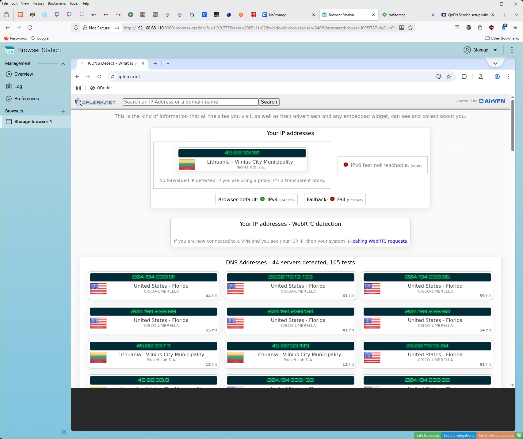 Below is what the old NAS shows - no DNS Leaks (no US based ISP DNS show).