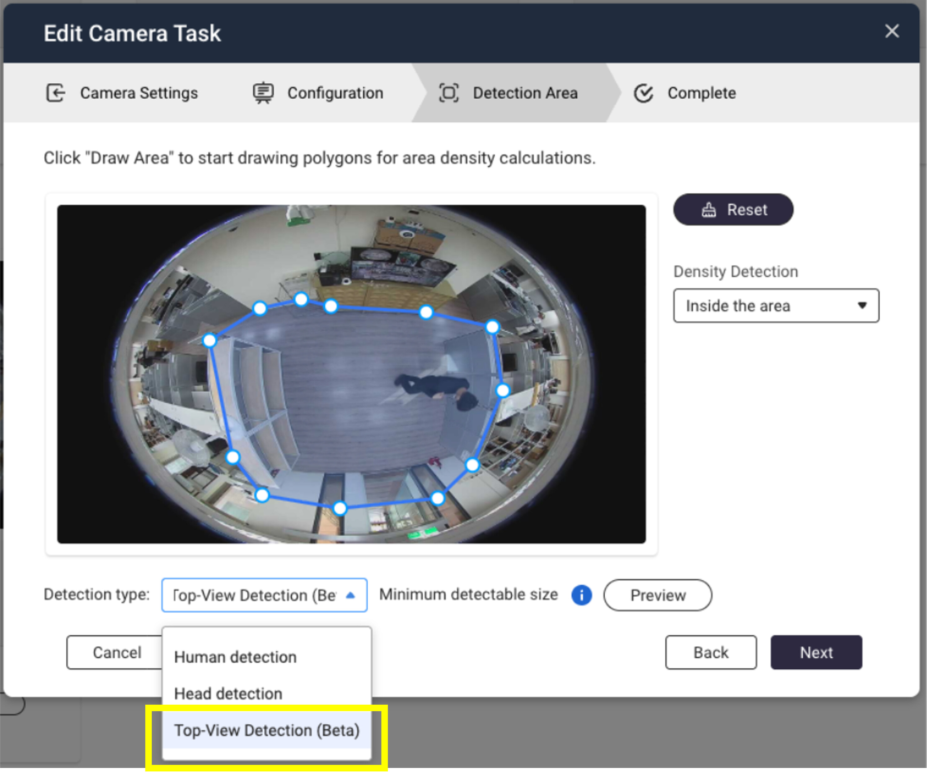 To support these scenarios, we’ve introduced the Beta Top Head Detection type for Line-crossing Counting and Area Density tasks.