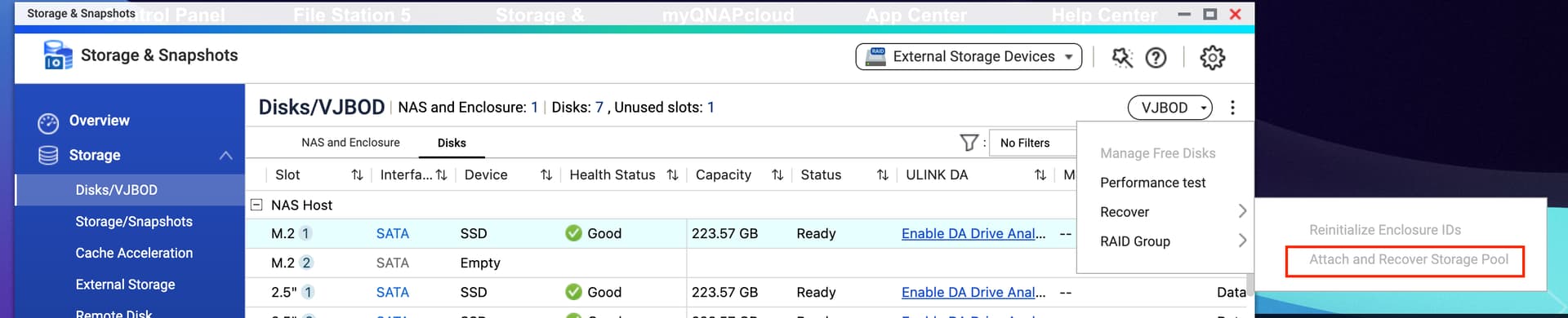 If you need the data (and it’s from a QNAP NAS): You can try the “Attach and Recover” feature as shown in the image below.