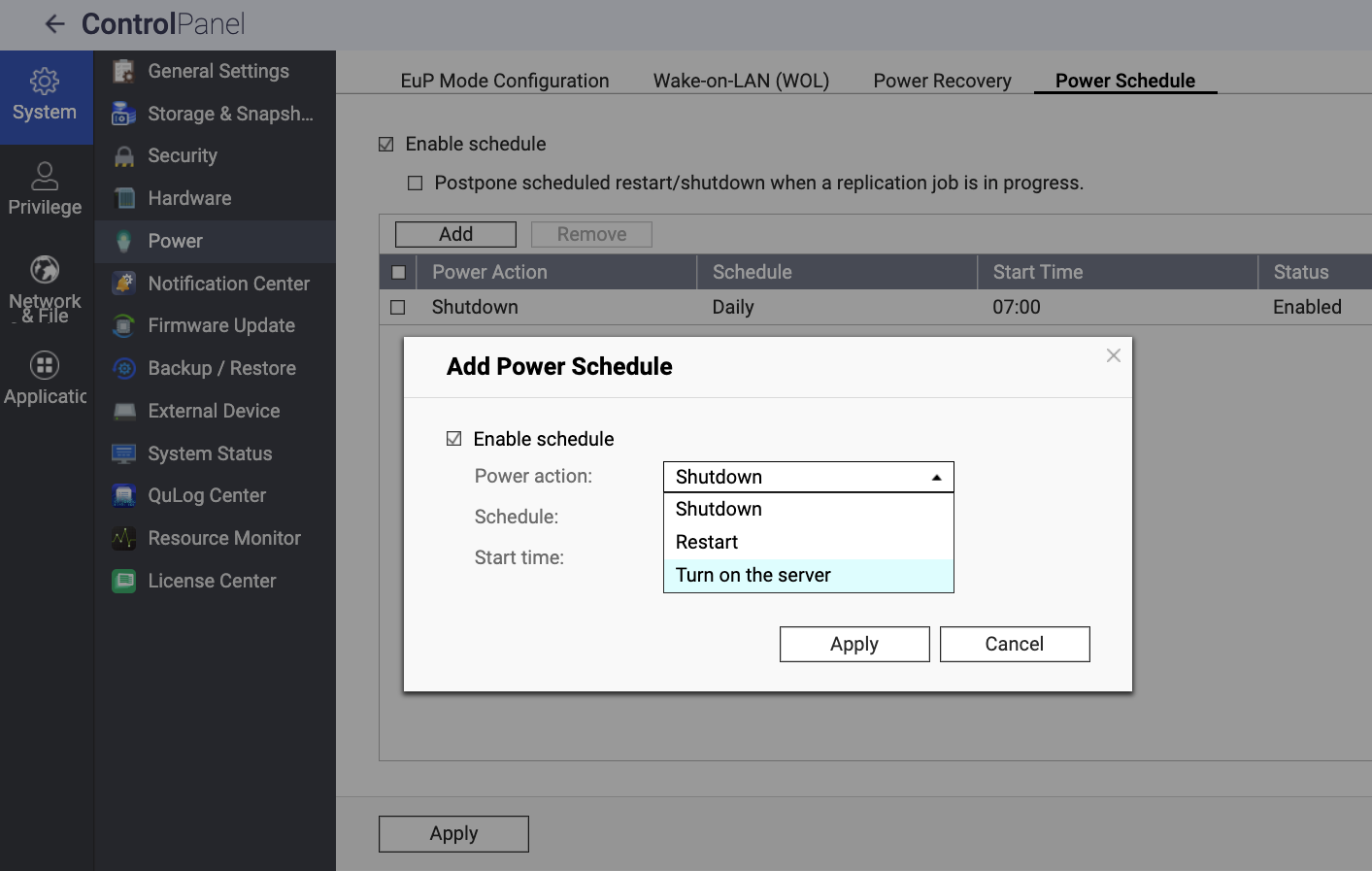 Enabling Power Schedule on the NAS | QNAP
