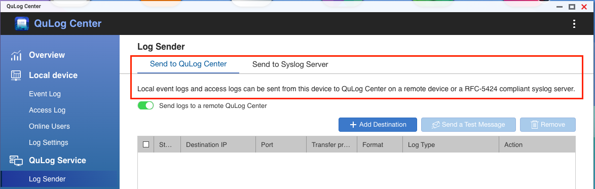 Correct, the SYSLOG server wants RFC 5424, but my only option on the QNAP is RFC 3164.