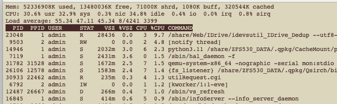 My TS-873A is sitting right now with a CPU load of 40+! I have no idea why either. QSirch is doing something but beyond that, I’m clueless. What’s exceptionally strange though is that even at that loading, the web UI is rather zippy which I have never seen before!