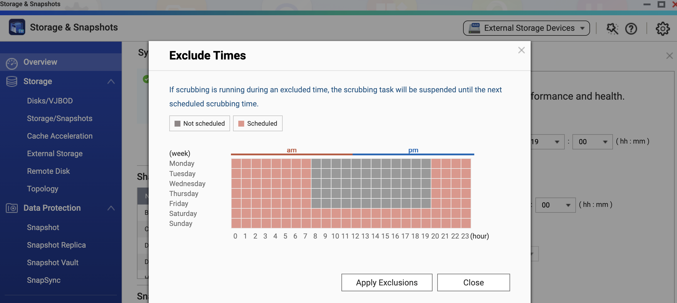 Disk Health and Auto Reclaim & SSD Trim are not as much time consuming as Raid scrubbing, so it is not that important for these operations. Although it wouldn’t be bad to have this kind of flexibility for their scheduling as well.