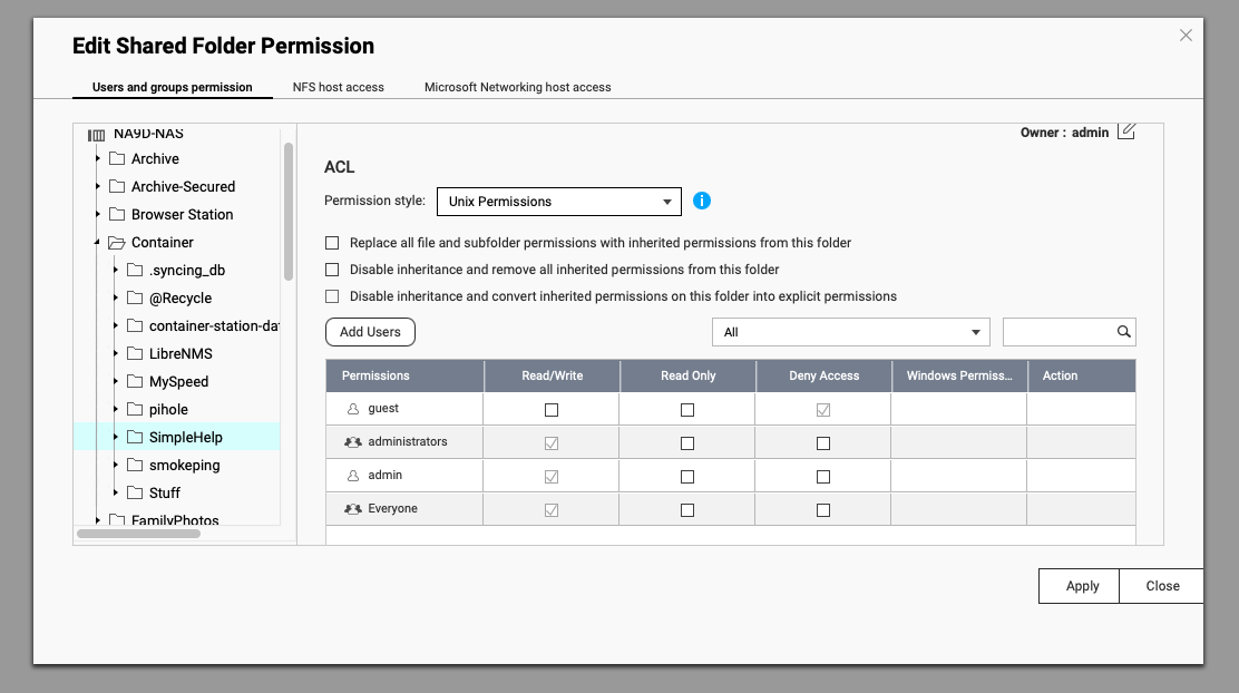 However, the new QuTS Hero ACL system is very difficult to work with, and I’m unable to configure these permissions properly.
