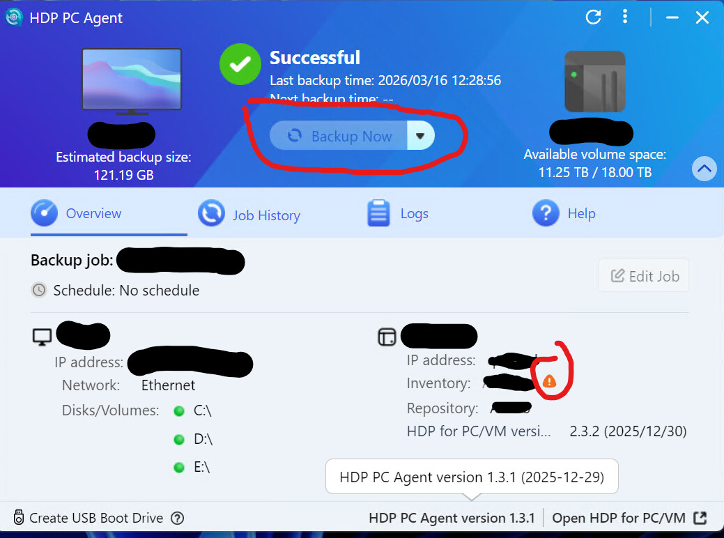 私はすべてのPCをHDP Agentとバージョン1.3.1にアップデートしました。また、古いバージョンのnetbakがインストールすると思われるpython2もアンインストールしました。すべてのバックアップは正常に動作しています。さらに、各PCのバックアップジョブとリポジトリをすべて削除し、新しいリポジトリとバックアップジョブを作成しました。それ以来、バックアップが非常に速くなりました。もしバックアップが遅い、または完了待ちの時間が長い場合は、リポジトリをリセットしてバックアップジョブを再作成してみてください。