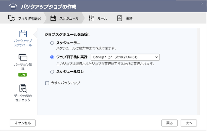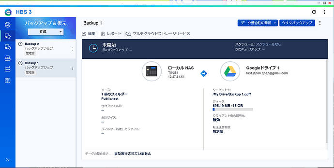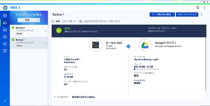 With HBS 3, you can “execute another backup job after the previous backup job is finished,” so after the test backup is done, proceed with the yukihito backup.