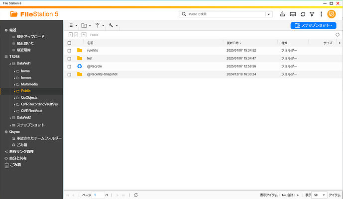 Under the Public folder, create folders named “yukihito” and “test,” and create some dummy data as backup targets.