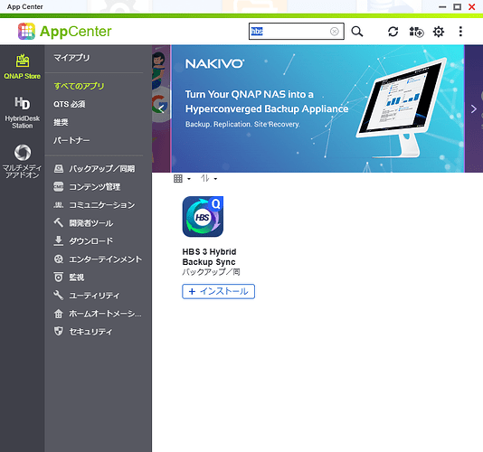 Access the QNAP NAS settings screen and install HBS 3 from the App Center.