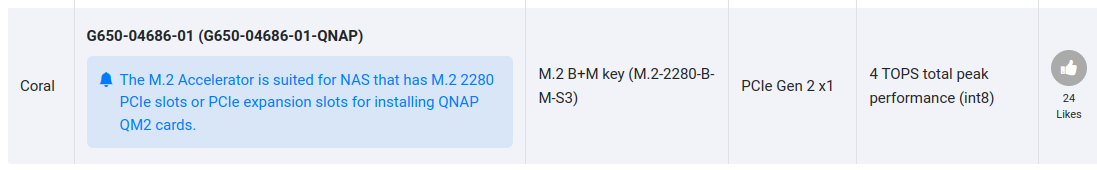 Was mich verwirrt ist, dass auf https://www.qnap.com/de-de/product/qm2-2p die QM2 damit beworben wird, dass sie “Unterstützung für M.2 NVMe SSDs zu einem QNAP NAS hinzufügt”. Coral Dual Edge wird dort nicht erwähnt.
