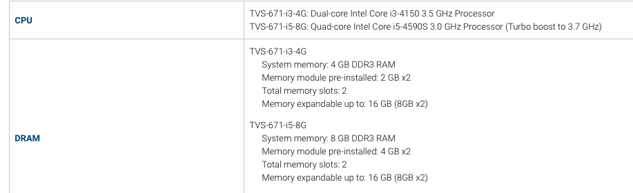 Now, you may be able to add more but that may or may not work. For example, one of my models TVS-672XT is spec’d a 32 GB but I have heard people using up to 64 GB.